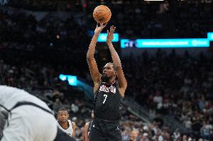 谈到第三节22-40单节落后18分,杜兰特表示:“他们投进了球,我们没进,他们投进了大概五、六个三分,我们创造出了好的出手机会,但是我们没能投进,我印象中我们那节好像都没得到罚球,他们得到了13、14次(罚球)。”