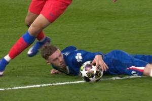 比赛第51分钟,帕尔默前场突破时与埃梅里有一个对抗,随后前者倒地示意对手犯规了,但主裁判反倒是吹了帕尔默倒地之后的手球犯规。