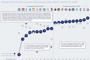 从历史维度看,2025年报告的巨额税前利润和亏损中,仅有两个案例能进入历史前30名。这表明,尽管部分俱乐部的盈亏数额巨大,但在欧洲足球财务史上仍有更为极端的先例。