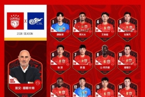 门将:1-颜骏凌、12-陈威、53-李智良、55-张宇航